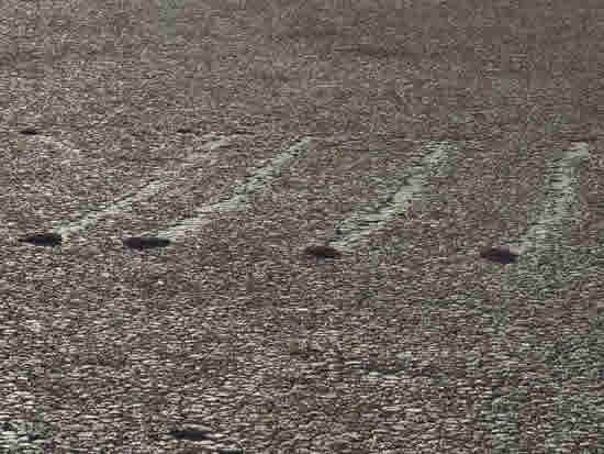 在乾裂的地面還留下了長長的移動印記。