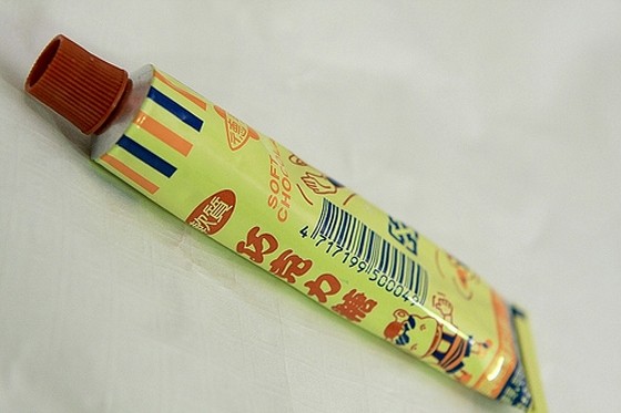 外型就是小條牙膏的巧克力,非常適合上課偷吃,邊擠邊吃時間一下就過去了,而且為了不浪費,大夥還會用尺推擠乾淨呢!