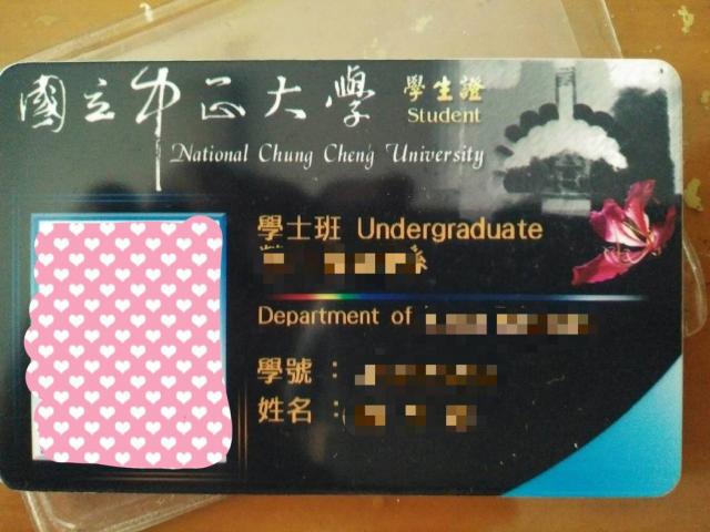 ▼被網友誇獎滿好看的「中正大學」學生證。