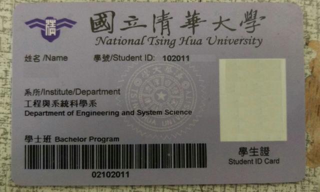 ▼中規中矩設計的「清華大學」學生證。