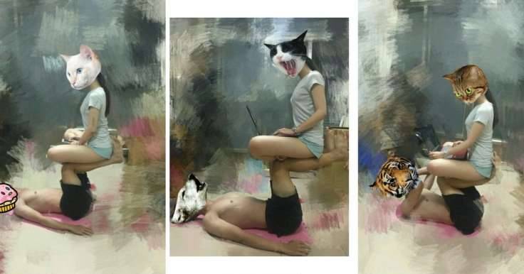 ▼這位女網友與室友在看完前篇「史上最狂情侶合照」後,決心挑戰他們做出更狂的體位,於是乎在Dcard上就出現了這種照片…